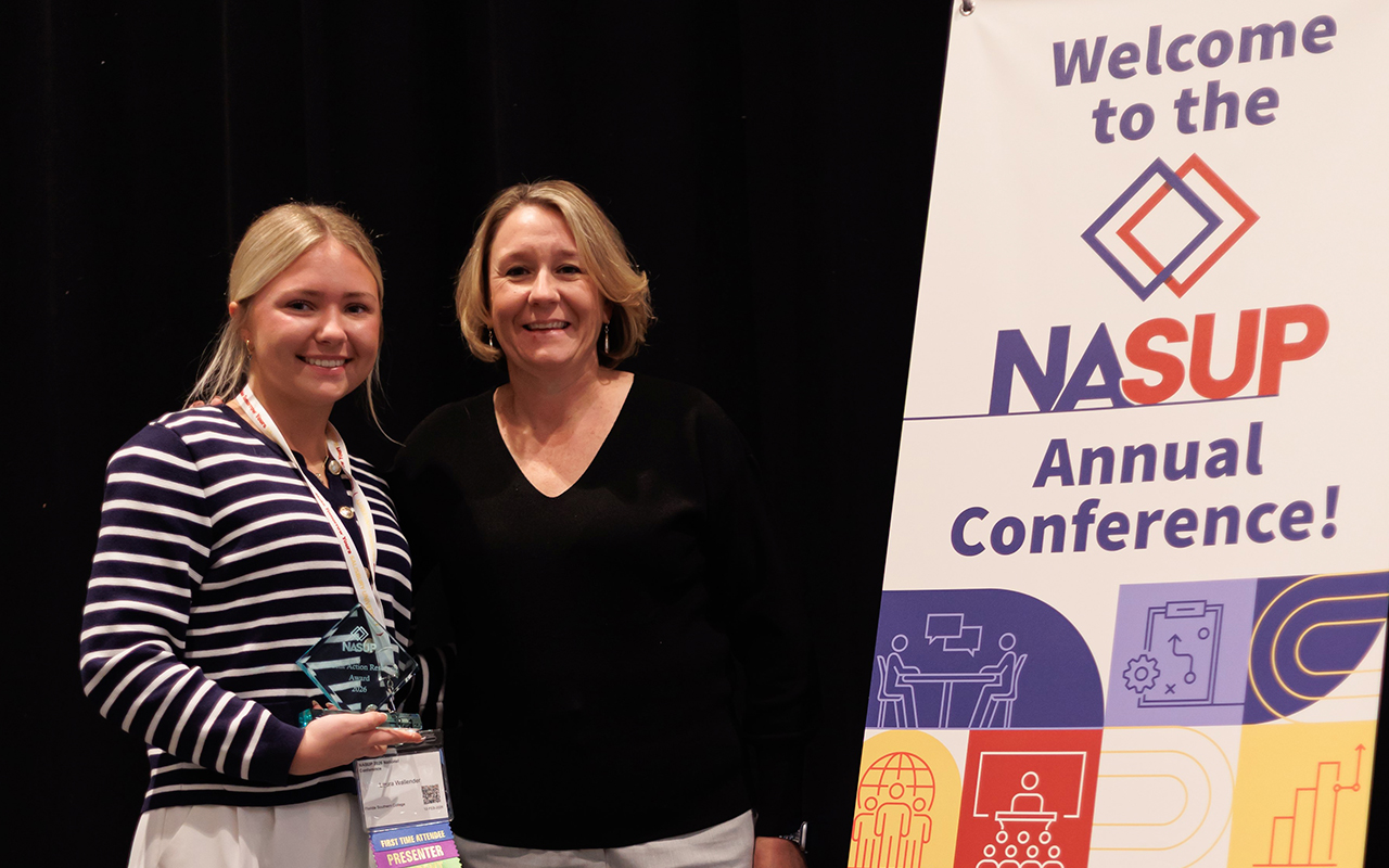 Laura Wallender, a senior in the Florida Southern College School of Education, won the National Association for School-University Partnerships (NASUP) Student Action Research Award last month, for presenting her thesis on improving fine motor development in kindergarten students at the annual NASUP conference in Washington D.C.